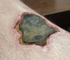 "Krokodil" is the street name for Desomorphine, a powerful morphine derivative that has swept through Russia. The trademark of this drug, and the reason for it's nickname, is the scaly green patches, that resemble crocodile scales, which appear on a user's skin before Krakodil completely deteriorates it away, even through the muscle and down to bone. This is due to the large amounts of toxic substances, usually found in the drug, from novice cookers neglecting to remove the byproducts that cause gangrene, corrosive contamination due to toxic ph levels, and absesses. The drug is usually cooked up and obtained from amateur home labs, in Russia. Rumors of it spreading to the U.S. has been seen in headlines, but most of these claims are unsubstantiated.